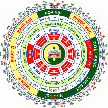 - Chủ mạng Đoài chọn hướng Chấn (Chính Đông) để quan hệ việc xây nhà : Theo Bát quái đồ số thuộc cung Tuyệt mạng là quẻ Trạch Tuỳ trong Kinh chu dịch. Chủ nhà tuyệt tự (không có con nối dõi), chết yểu, bệnh tật liên miên. Đại hung.